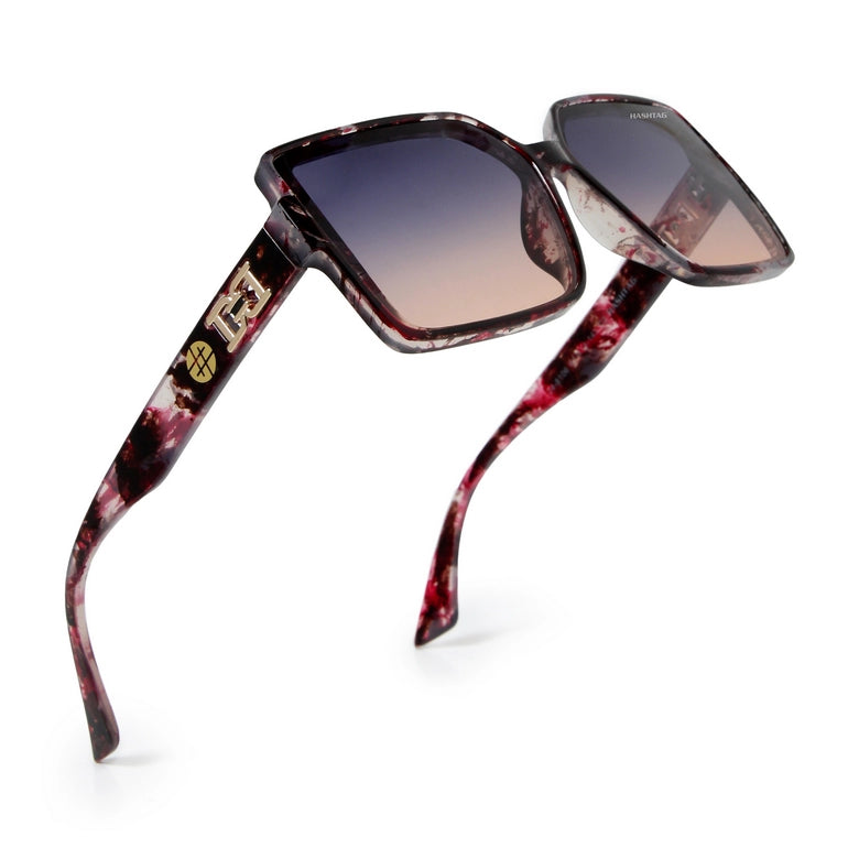 Cipher | Purple Black Texture Large Full Rim Rectangle Sunglasses for Women [UV-protected]