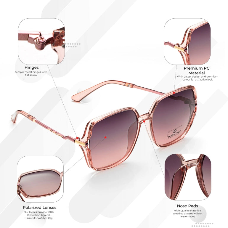 Driftis | Pink Large Full Rim Heptagonal Sunglasses for Women [Polarized]