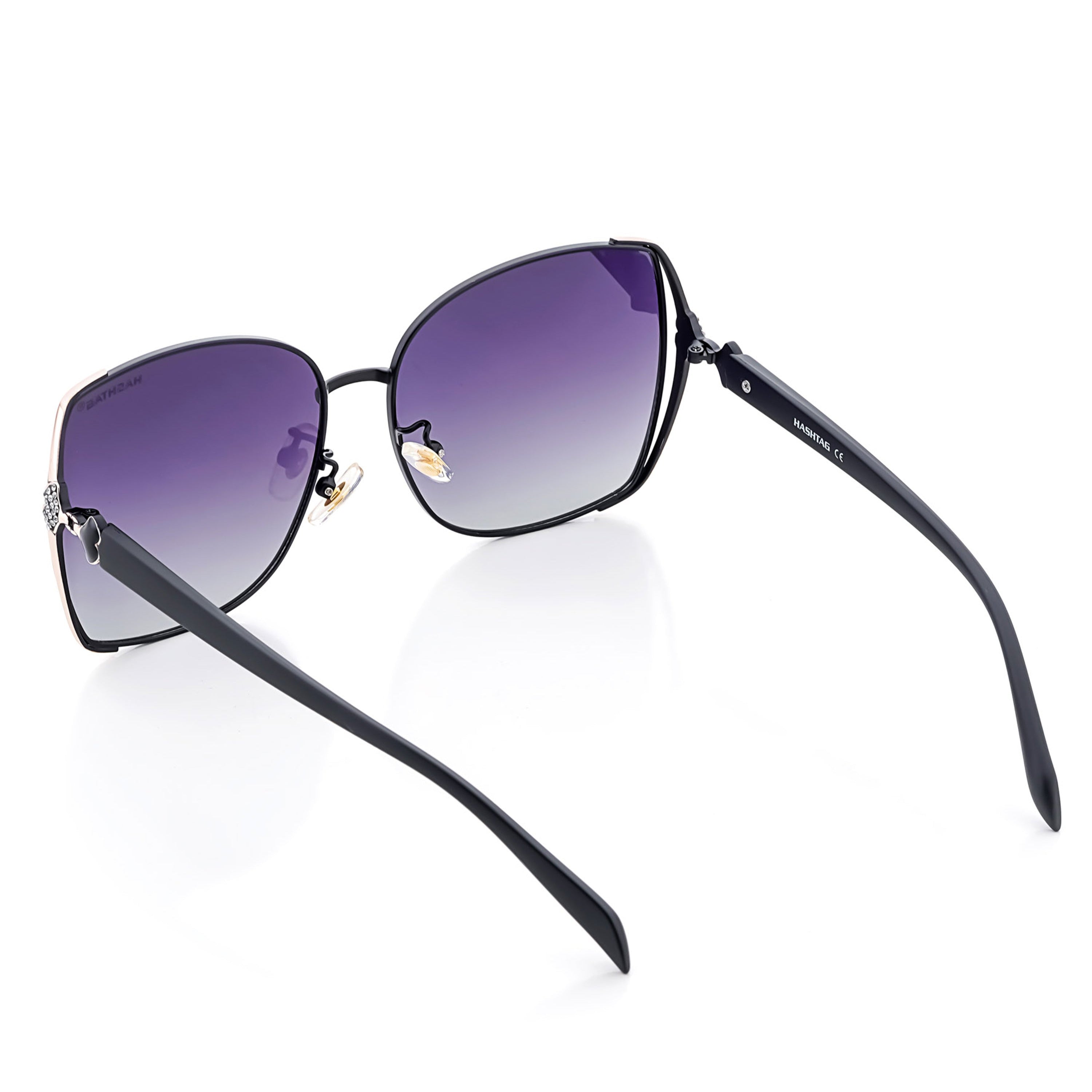 HEARTS | Black & Golden Large Full Rim Square Sunglasses for Women [Polarized]