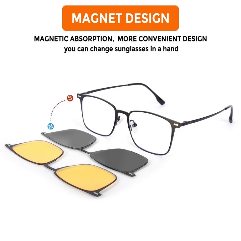 Quarion | Black Medium Full Rim Rectangle Clip-on for Men & Women [Clip-on]