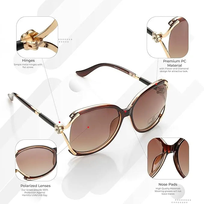 Saffron | Brown Large Full Rim Oval Sunglasses for Women [Polarized]